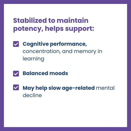 Regular price $22.97Regular priceUnit price / perHelps support cognitive performance, concentration and memory in learning, balanced moods and may help slow age-related mental decline.