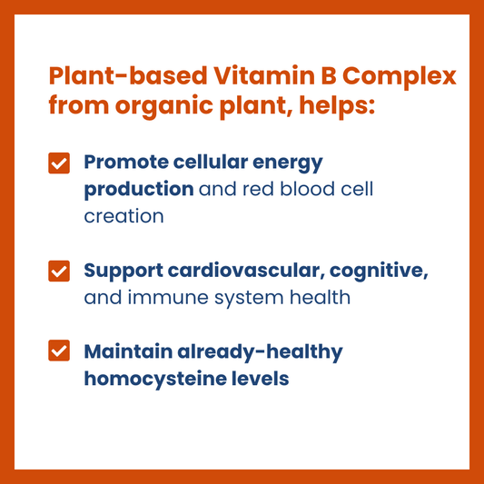 Regular price $19.97Regular priceUnit price / perSale price $19.97Plant-based B vitamin complex with active folate and vitamin B12, helps promote cellular energy, health, brain, and immune health.