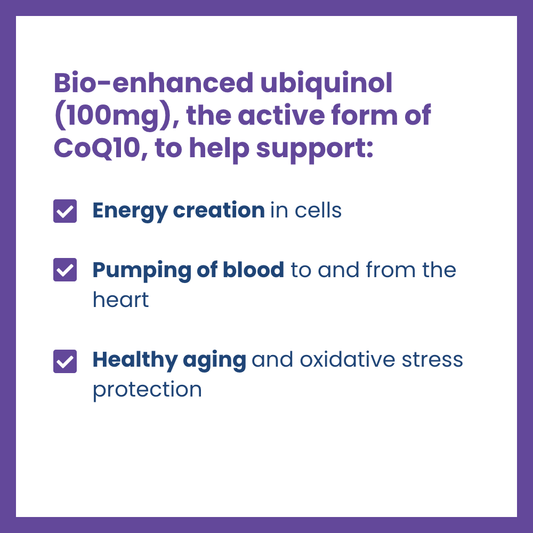 Regular price $29.97Regular priceUnit price / perSale price $29.97Made with ubiquinol (100mg), the active form of CoQ10 to helps spark energy creation and protect against oxidative stress.