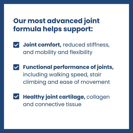 Regular price $49.97Regular priceUnit price / perSale price $49.97Advanced formula helps comfort joints, reduce stiffness, and promote mobility and flexibility, improves functional performance, and promotes healthy cartilage.
