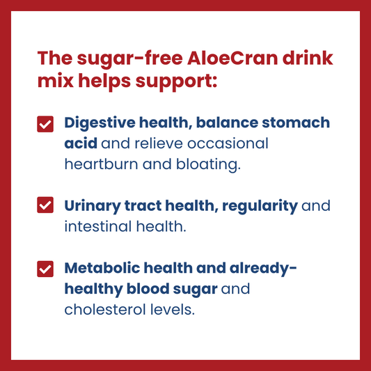 Regular price $29.97Regular priceUnit price / perSale price $29.97Aloe vera, cranberry and fiber drink powder to help digestion, bloating, regularity, urinary tract, intestinal and heart health.