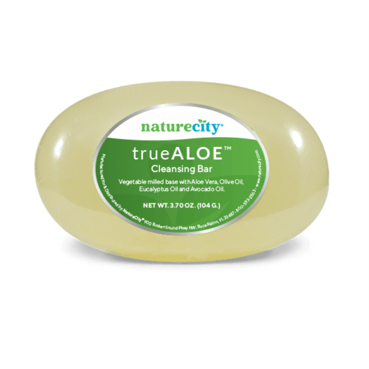 The natural TrueAloe Cleansing Bar helps your skin look and feel better while it cleans. This bar uses natural plant fats (no animal fats) to gently remove dirt, grime and other pollutants that attach to your skin. And it deodorizes as you wash. Your skin feels clean, soft and moisturized after washing. It rinses off without leaving a film on your body.