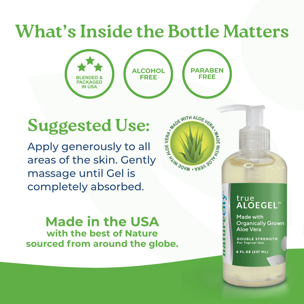 Fresh Aloe gel from the plant is about 99.5% water and 0.5% Aloe solids (nutrients). A full, single strength Aloe gel should also contain 0.5% Aloe solids, but many contain much less (it’s typically not disclosed). TrueAloeGel is made with 1% organic Aloe solids making it a double strength gel for greater potency.