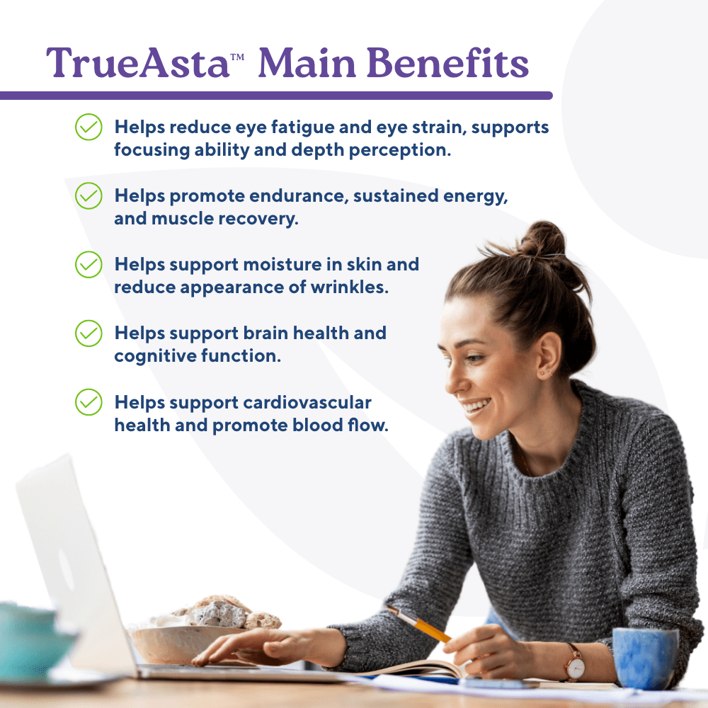 It’s best to take TrueAsta with or after meals to help with absorption.