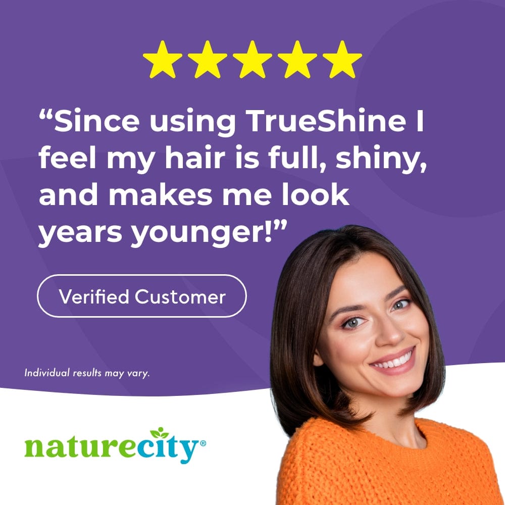 Newly grown, root end hair has the ideal elements of youthful hair – a combination of tensile strength and radiant appearance. As hair is subjected to daily stresses and different types of weathering, the fiber strength is weakened, and hair loses it youthful look. TrueShine contains the novel Keratec™ keratin protein complex that can help you maintain more youthful looking hair by helping to slow down the natural aging process of hair.