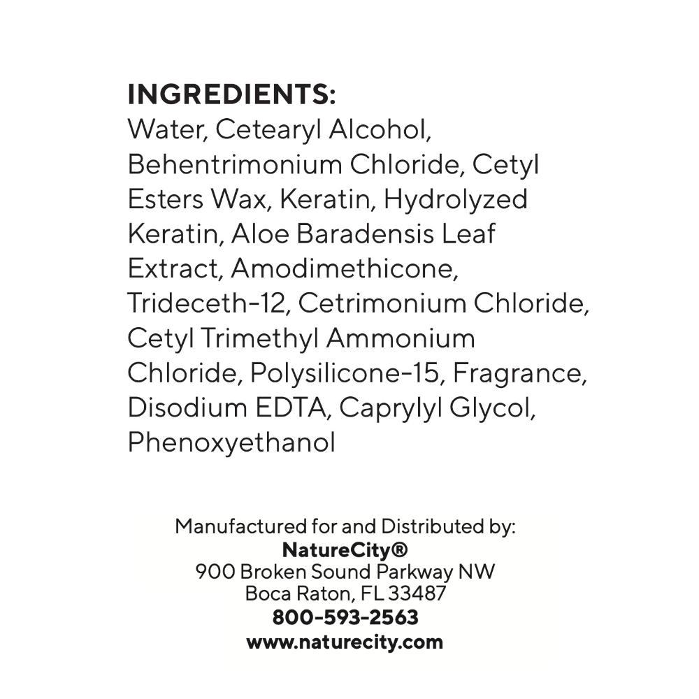 INGREDIENTS: Water, Cetearyl Alcohol, Behentrimonium Chloride, Cetyl Esters Wax, Keratin, Hydrolyzed Keratin, Aloe Baradensis Leaf Extract, Amodimethicone, Trideceth-12, Cetrimonium Chloride, Cetyl Trimethyl Ammonium Chloride, Polysilicone-15, Fragrance, Disodium EDTA, Caprylyl Glycol, Phenoxyethanol |