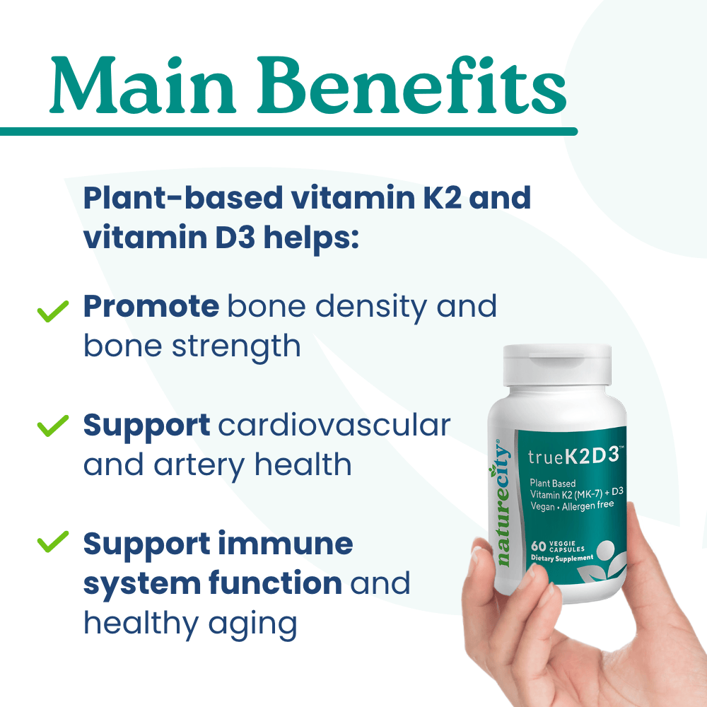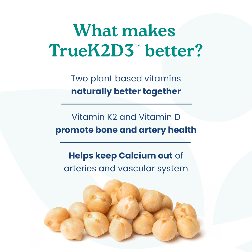 On top of this, TrueK2D3 contains the premier source of vitamin K2 and organic plant-based vitamin D3.