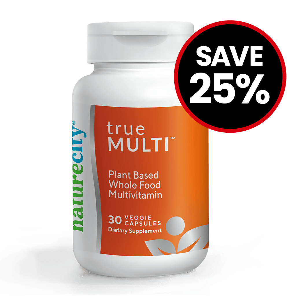 TrueMulti is a true whole food multivitamin made from 6 certified organic plant sources (guava fruit, lemon peel, sesbania leaf, amla fruit, holy basil leaf and annatto seed).